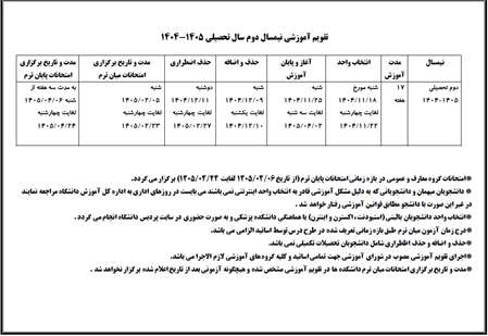 تقویم آموزشی نیم سال دوم1405-1404